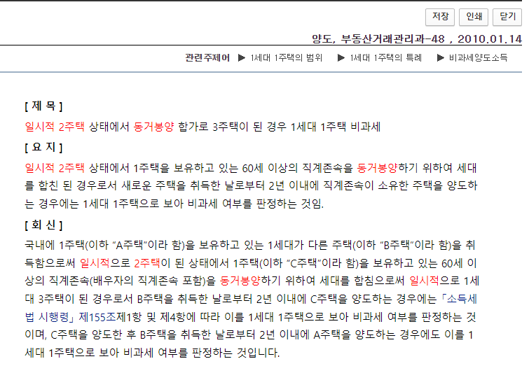 반대로 부모가 일시적 1세대 2주택 상태에서 자녀 세대와 합가한 경우 역시 동일하게 적용할 수 있습니다.