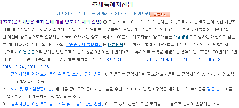 01 토지 수용 양도소득세 감면 조항