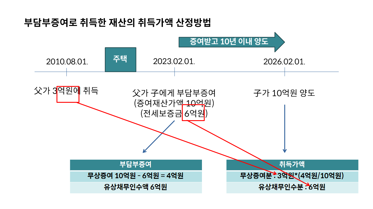 | 유상채무 인수분 | 수증자가 부담부증여받은 채무인수액 상당 |