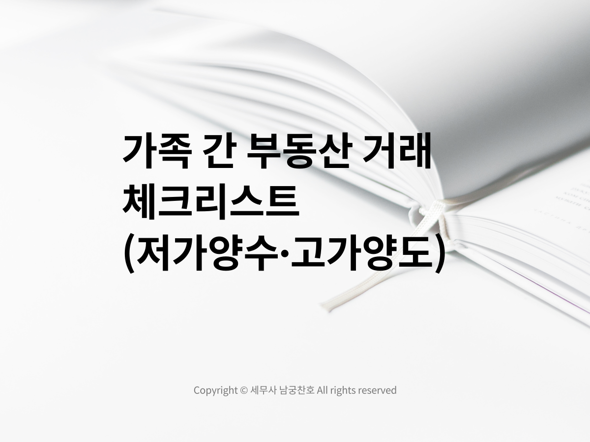 가족 간 부동산 거래는 특수관계인 간 거래로 일반 거래보다 유의할 내용이 많습니다.