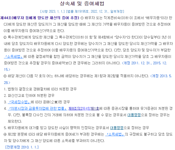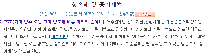 따라서 상증세법은 이와 같은 거래에 증여세를 과세하기 위하여 아래 상증법 제35조를 두고 있습니다.